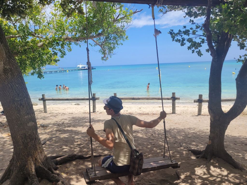 Situé à 5 km de Nouméa, il est très facile de rejoindre l’îlot Maître en bateau taxi. L’occasion de faire une petite excursion en amoureux (Faustine est à la crèche), pour se relaxer et barboter dans un cadre idyllique. Nous avons pu nager tous les deux avec des tortues, voir des poissons magnifiques, de toutes les couleurs et de toutes les tailles (perroquets, loches, poissons papillons…), des oursins gigantesques, un bénitier, des étoiles de mer énormes et bleues… bref une diversité faunistique impressionnante sans oublier les tricots rayés! En revanche pas de requin pour aujourd’hui 🙂