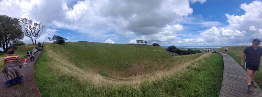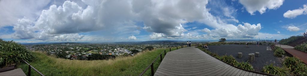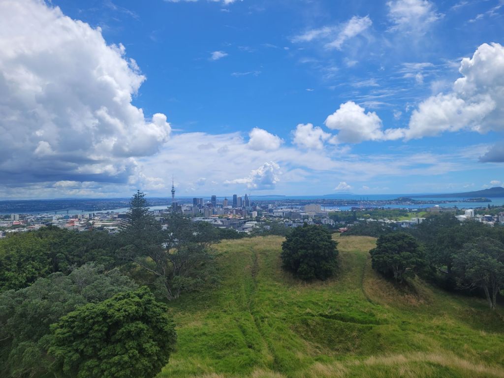 À la découverte de cette ville immense, ce qui frappe au premier abord, c’est sa taille… on n’en voit pas la fin… et la couleur: du vert partout!! Peu de grands immeubles et beaucoup de pavillons avec jardin… des petites collines de-ci de-là qui sont en fait des volcans sacrés pour les Maoris. Le Mont-Eden en fait partie.