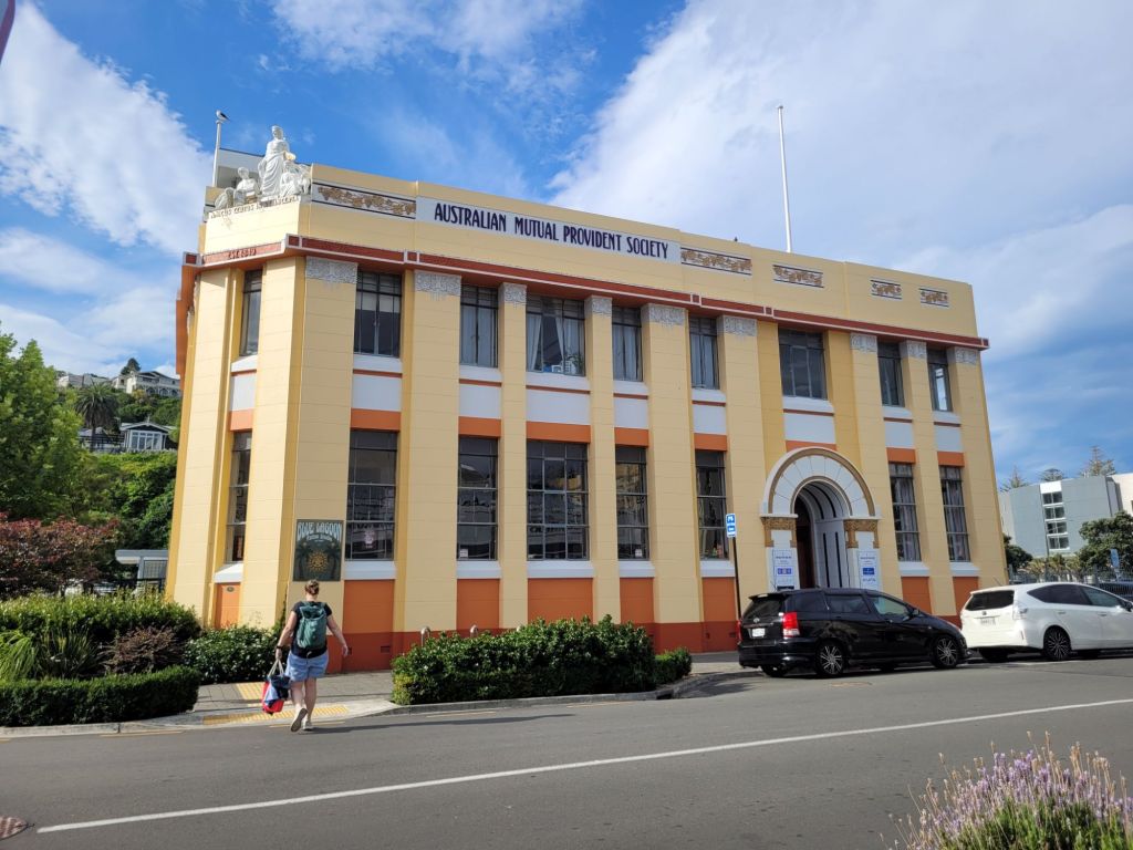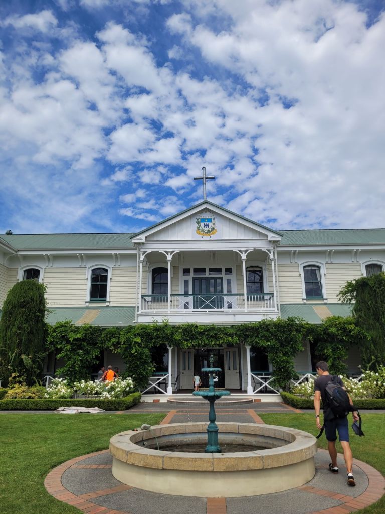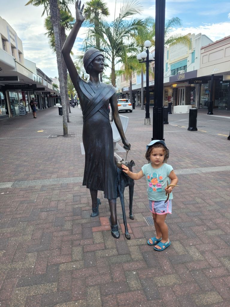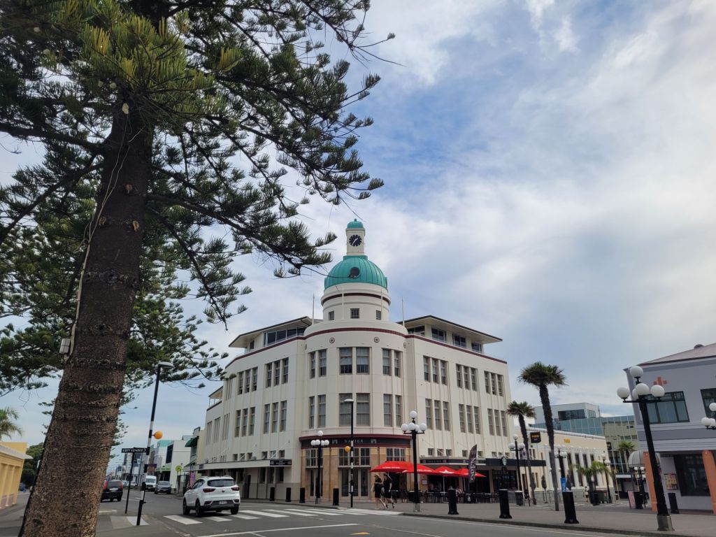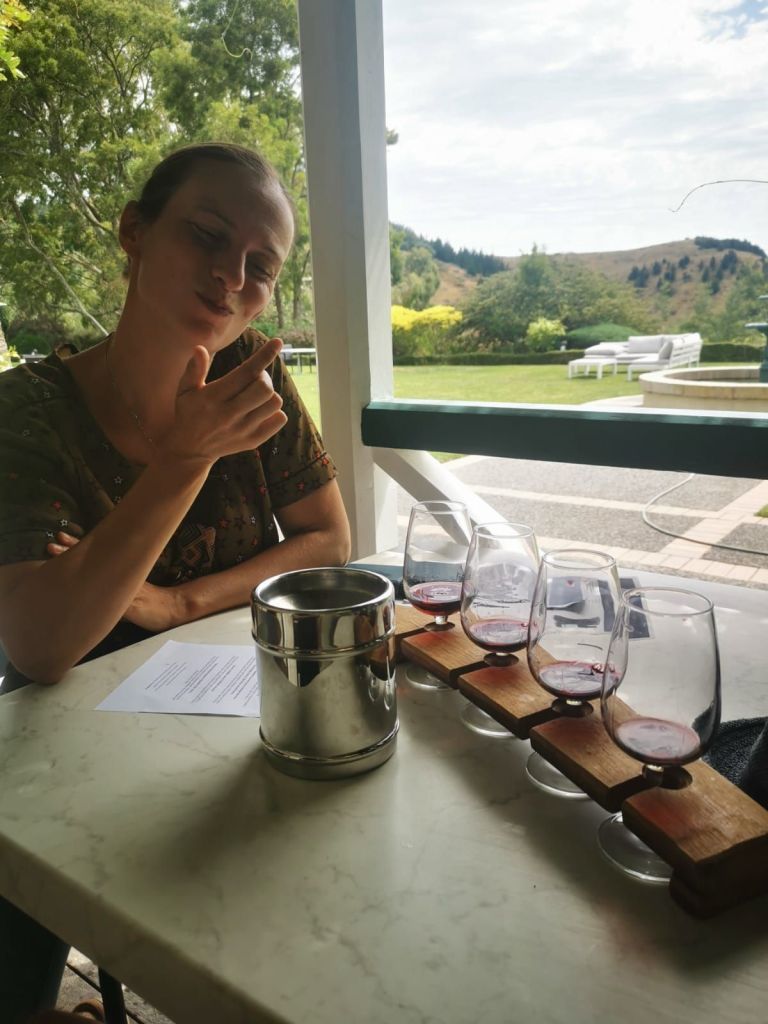 Super accueil dans notre logement de Napier, on a eu droit à une visite de sa petite ferme (poules et moutons) ainsi que la transmission de plein d’infos sur l’histoire de la région (tremblement de terre en 1931, cyclone Gabriella en 2023…) C’est une région qui a été façonnée par les événements climatiques.C’est un super endroit entouré d’un jardin un peu punk très sympa.Petit tour à la Mission Estate Winery, plus ancien domaine viticole de Nouvelle-Zélande fondé par des missionnaires français en 1851.Avec dégustation de vin rouge (Pinot noir, Syrah, Malbec, Cabernet-Sauvignon) et repas au restaurant.Visite de Napier. La ville a subi un important tremblement de terre en 1931. Elle a été presque entièrement reconstruite dans le style de l’époque : Art déco.Art déco aux couleurs Maories, s’il vous plaît.Sculpture » A wave in time » avec un chien qui a beaucoup plu à Faustine. La ville est pleine de bâtiments dans ce style.Le lendemain, c’est parti pour le Gannet Safari ! Notre chauffeur a un accent à couper au couteau et on ne comprend vraiment pas tout, mais les paysages sont superbes !Les paysages sont magnifiques malgré un ciel maussade.On est arrivés! Au loin un colonie de fous de bassan, il y en a 4 en tout au Cap Kidnappers pour plusieurs milliers d’oiseaux.La plus impressionnante est celle à nos pieds…Les mâles et les femelles ne se distingue pas mais on reconnaît bien les juvéniles.