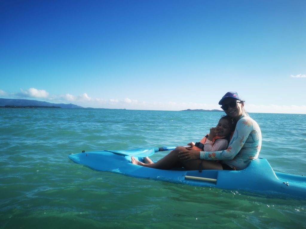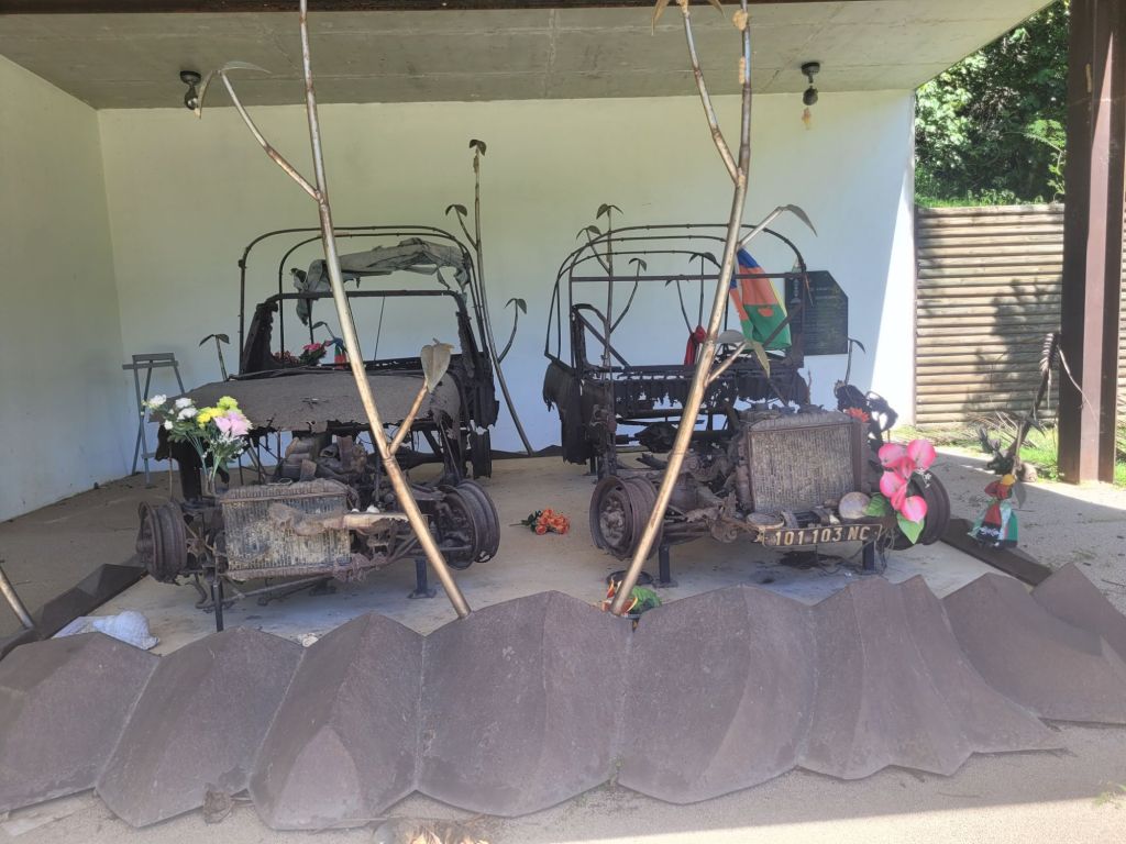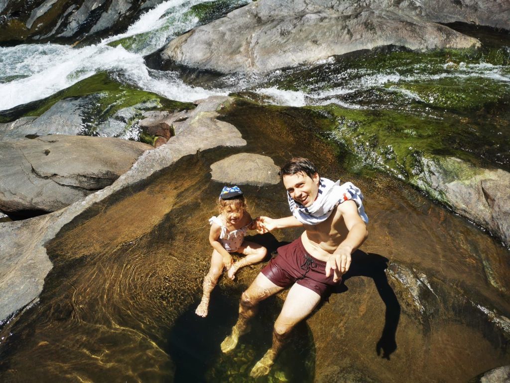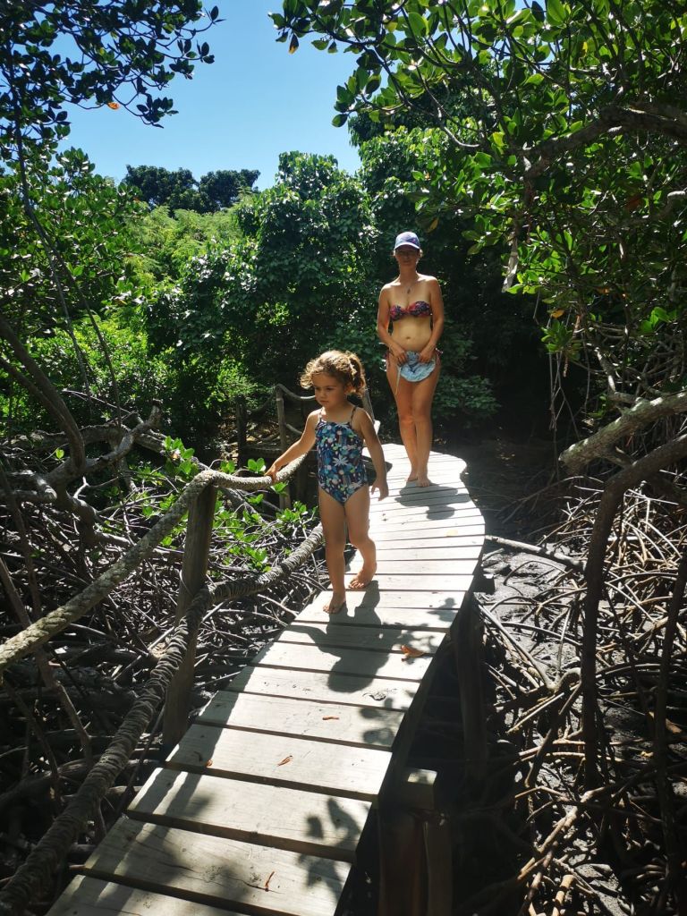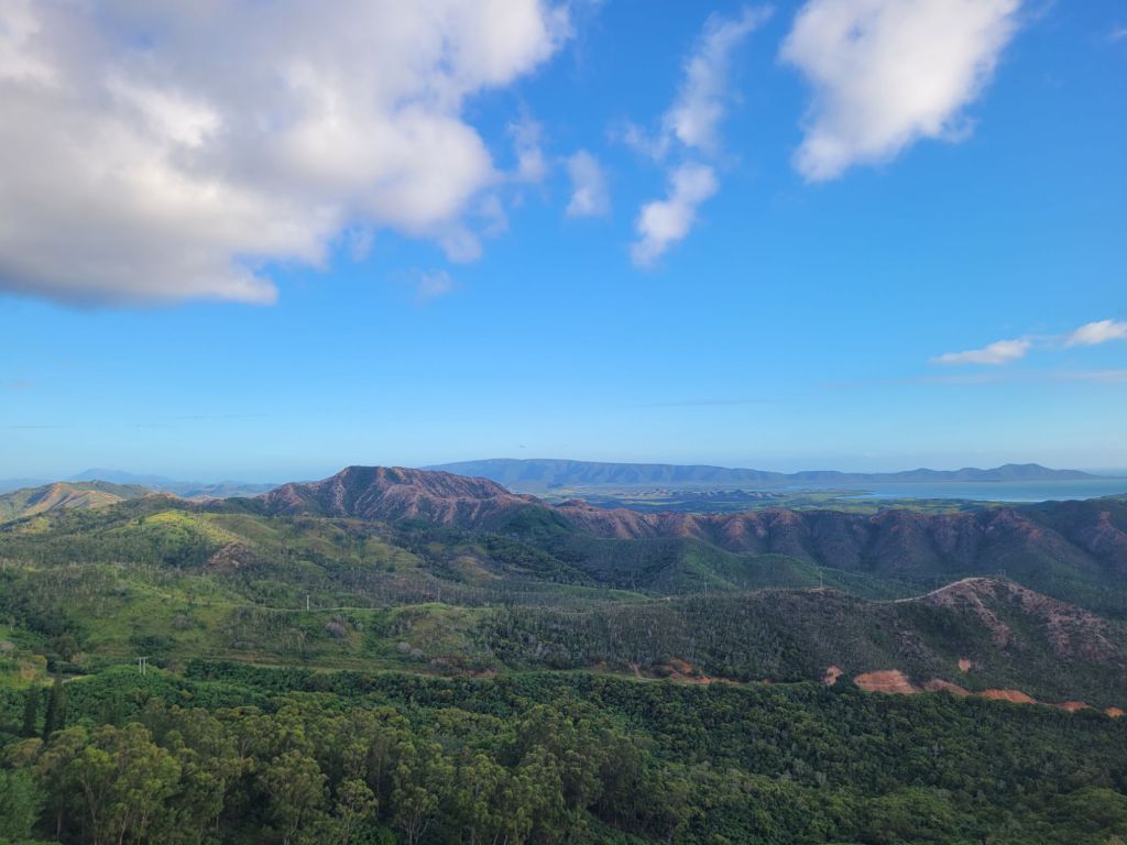 Les roches noires très découpées et la végétation luxuriante offrent un contraste magnifique.Un visiteur… venu d’ailleurs!La fameuse poule qui porte très bien son nom! Et le Sphinx!Petit tour au monument en mémoire de l’embuscade de Waan Yaat. Je vous invite à aller écouter l’émission d’Affaires sensibles sur ce petit bout d’histoire de la Nouvelle-Calédonie. C’est extrêmement intéressant et ça explique beaucoup de choses…Pendant que papa plonge…Vu à la sortie du baptême de Colin.Arrivée de nuit à la Ouane Batch. Accueillis par une grande tablée de 25 convives qui favorise les rencontres et les échanges. Des plats tous plus appétissants les uns que les autres. Une des meilleures tables de NC, assurément!Notre cabane pour deux nuits, rudimentaire mais efficace ! Le bruit des vagues, le vent dans les arbres, le chant des oiseaux… parfait !Baignade à la cascade de ColnettPlein de petits cailloux, de cheminements et de trous d’eau. Un super endroit pour se rafraîchir, pique-niquer, se ressourcer…Et plein de crevettes de creeks qui chatouillent les pieds !Montée rapide au col d’Arama, pendant que Faustine hurle en bas avec son Papa… Pour admirer le super point de vueGrandiose de tout les côtés…Avec un début de soleil couchant…Le lendemain, lever les pieds dans le sable au bungalow de Kejaon. On est à la pointe Nord de Grande-Terre.Le lieu est très chouette, avec un point de vu sur la baie Banare…Un petit étang plein de nénuphars dont les chevaux, en liberté dans le lieu, raffolent.On peut aussi y faire du Canoë…Et essai de paddle compliqué… mais ludique.On en a profité pour aller encore plus au nord. Après un passage par les marais salants de Kô qu’on dirait abandonnés, on part se badigeonner…De boue!!…Puis séchage et pré-rinçage dans la mer… la fin du rinçage se fait avec une eau dans laquelle à infusé diverses plantes, notamment de l’eucalyptus. Très relaxant!Merci la tribu de Kô !En rentrant des bains, on a croisé des chevaux sauvages qui se baignent dans la mer.On a aussi profité quelques nuits d’un super ciel étoilé…